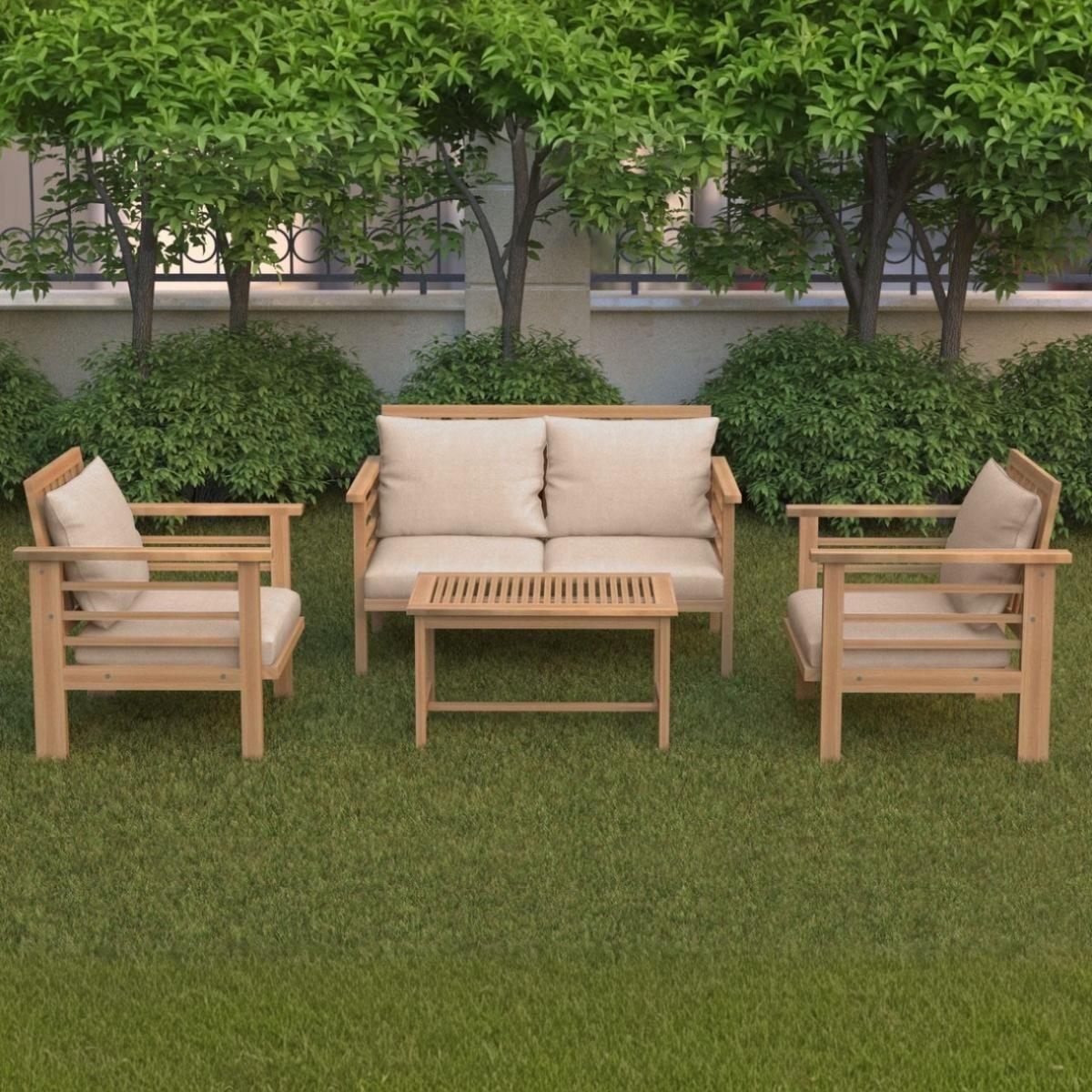• مصنوع من خشب زان، و يتكون من كنبة و 2 كرسي و ترابيزة.
