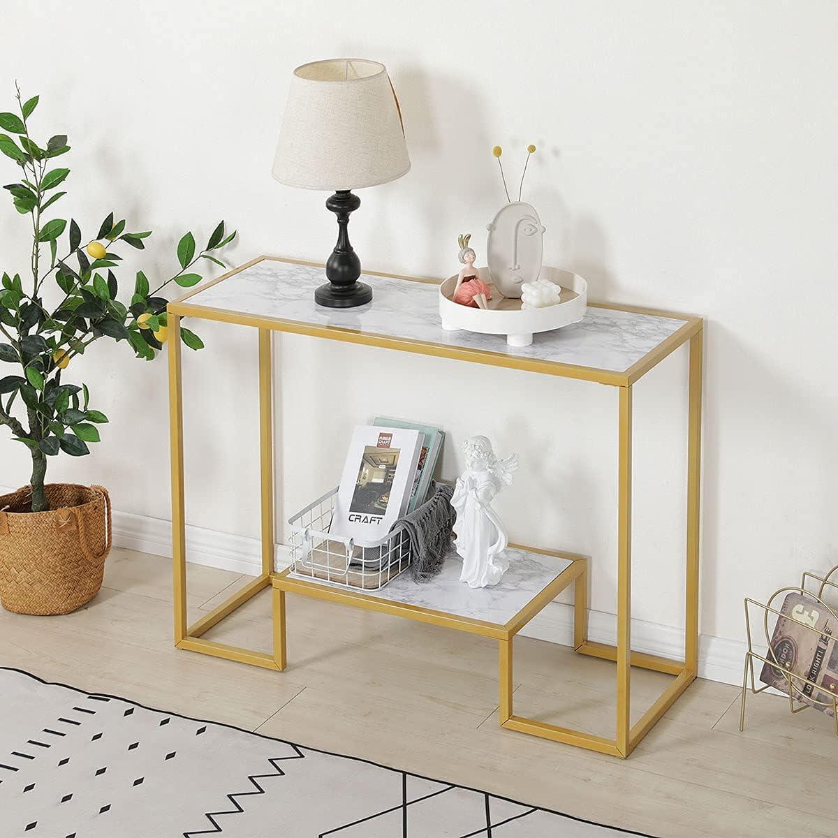 منضدة أو طاولة منصة تحكم ، مصنوعة من المعدن والرخام الصناعي، بطبقتين، باللون الذهبي، بأبعاد 1...