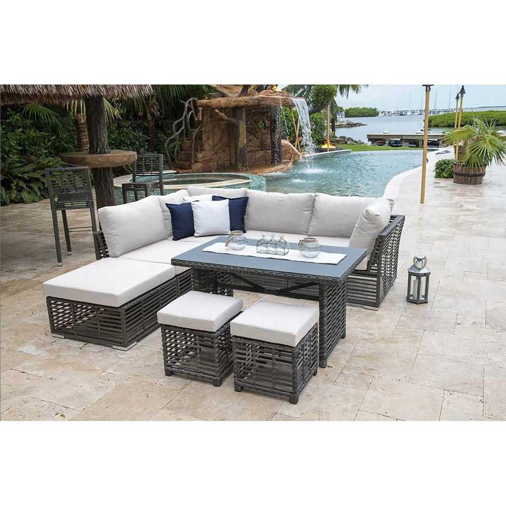 مصنوع من بلاستيك رتان بيور و قماش دك، و يتكون من كنبة و ترابيزة و 2 بوف.