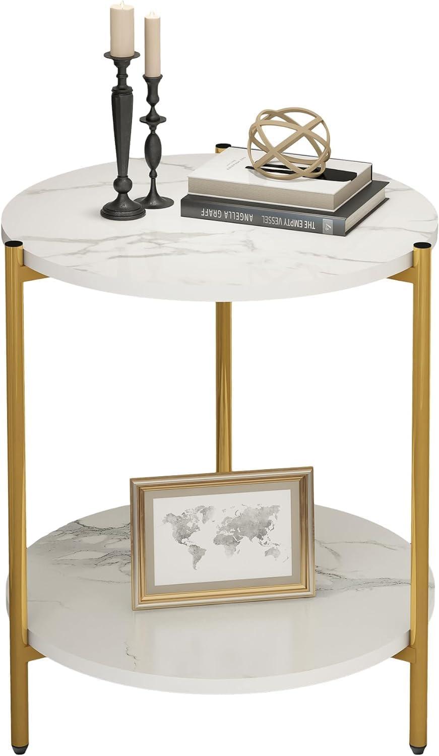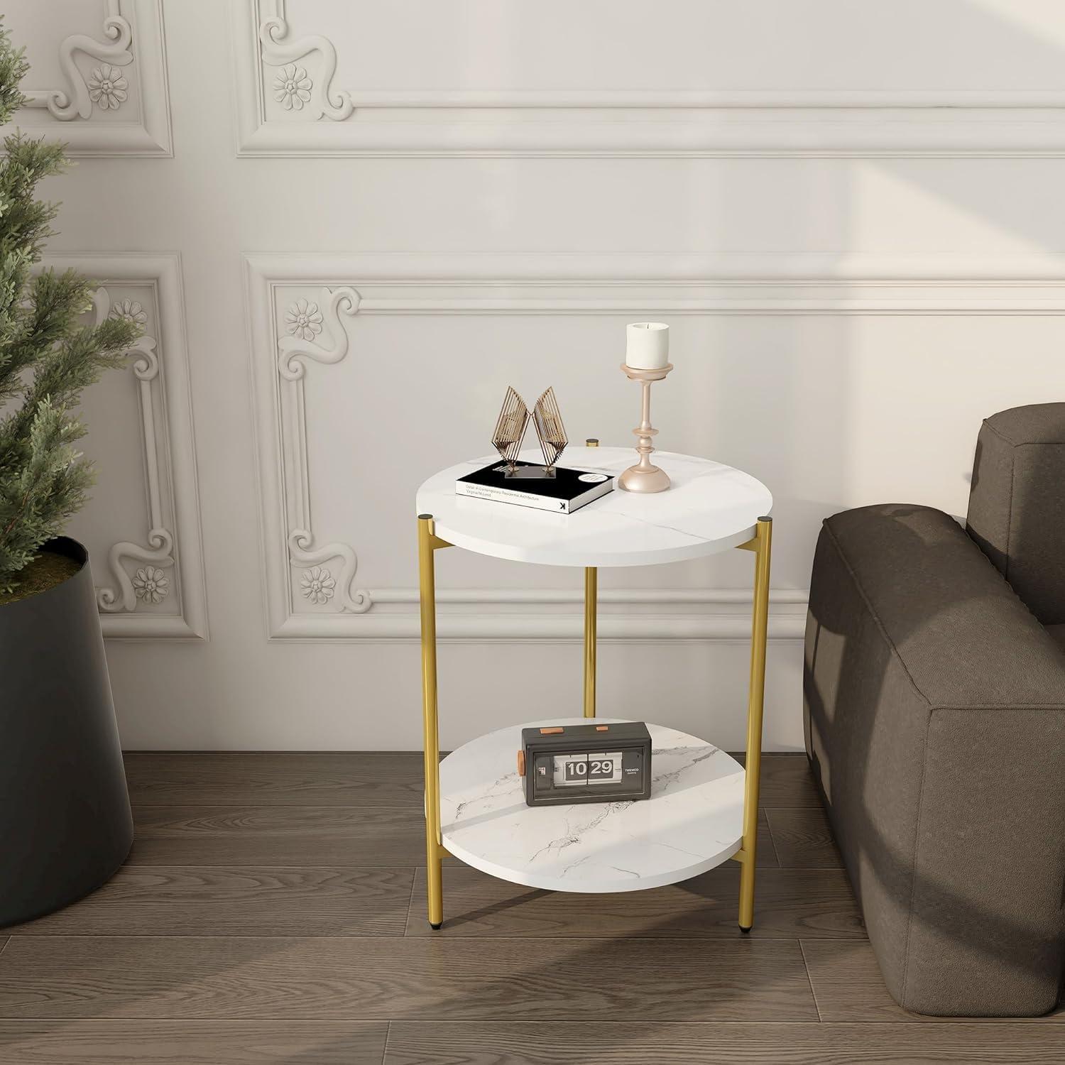 طاولة قهوة عصرية متعددة الاستخدامات من هومز اليمنت مصنوعة بملمس الرخام بشكل دائري من طبقتين، طاولة قابلة للادخال بجانب السرير لغرفة المعيشة وغرفة النوم والمكتب وقاعة الاستقبال - 40 × 40 × 43 سم، ابيض