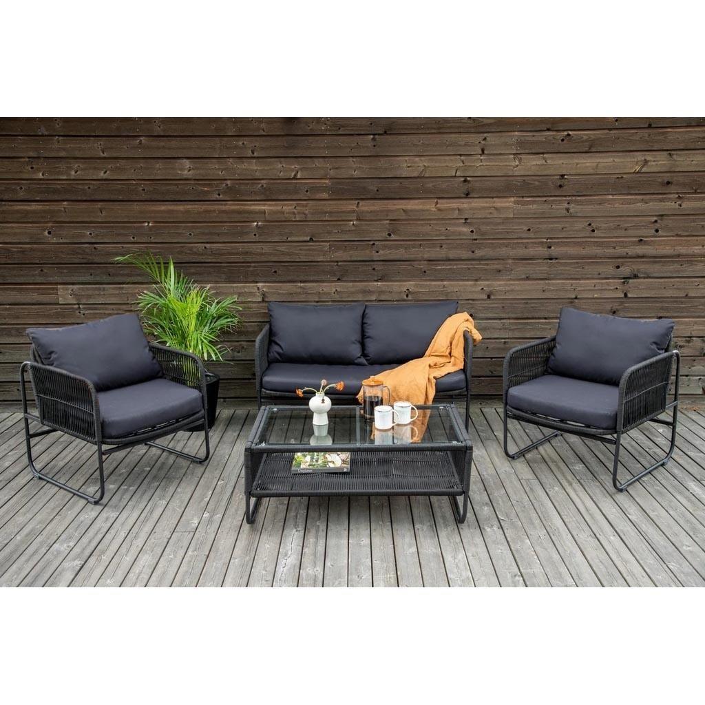 طقم أثاث خارجي 4 قطع حديد وقماش مقاوم للماء - أسود