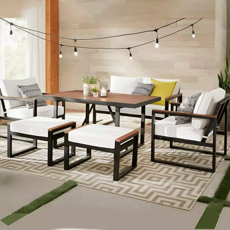 حوّل مساحتك الخارجية إلى مكان للاسترخاء والجلسات الممتعة مع طقم الأثاث الخارجي الأنيق. تصميم عملي ومريح يناسب الحدائق، الشرفات، والتراسات، مع خامات مقاومة للعوامل الجوية لضمان المتانة والجمال. اجعل أوقاتك في الهواء الطلق أكثر راحة وفخامة.
