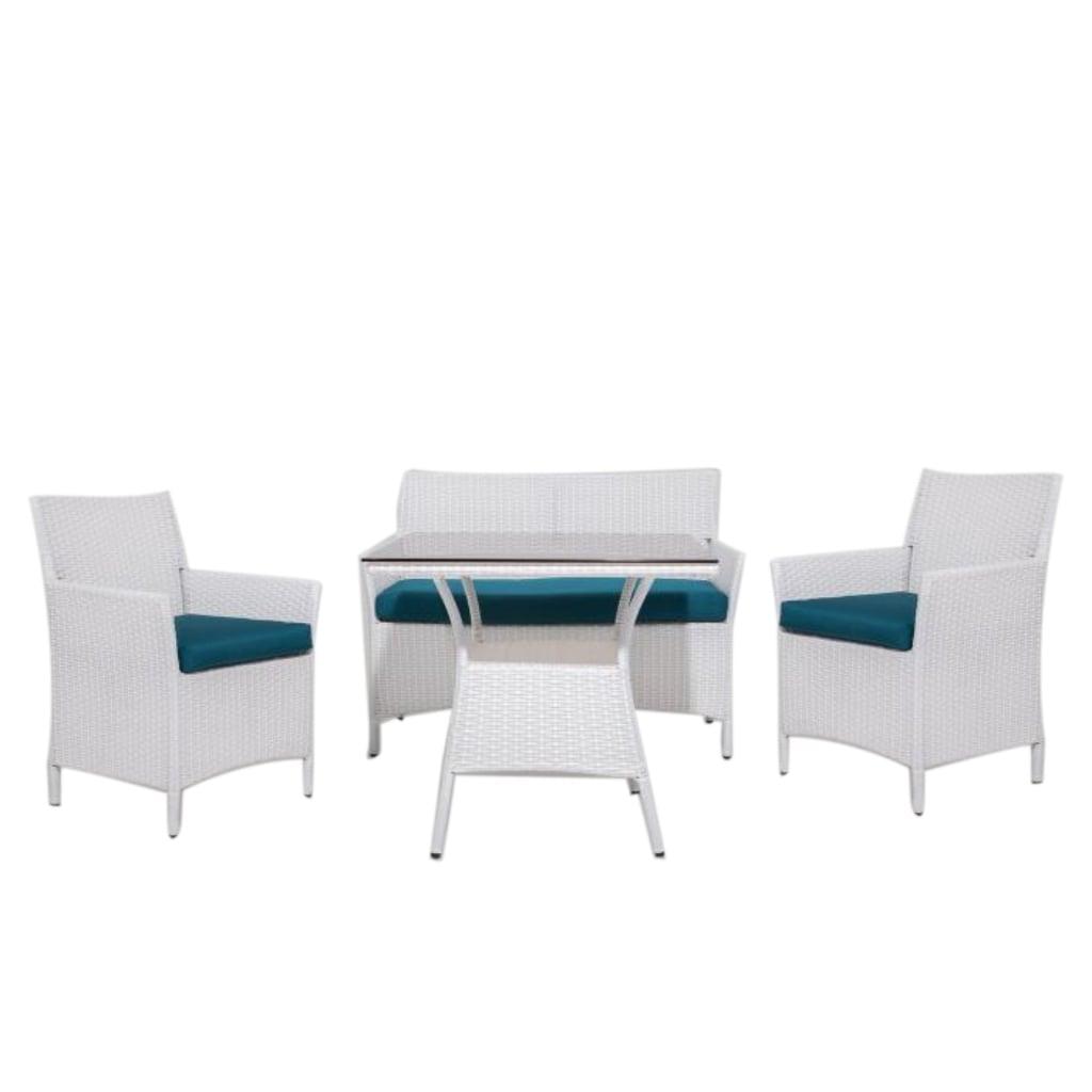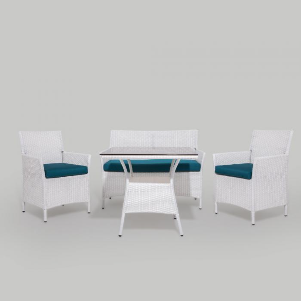طقم أثاث خارجي بلاستيك رتان 4 قطع - أبيض
