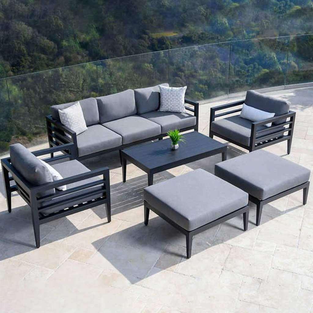 طقم أثاث خارجي حديد 6 قطع - أسود و رمادي