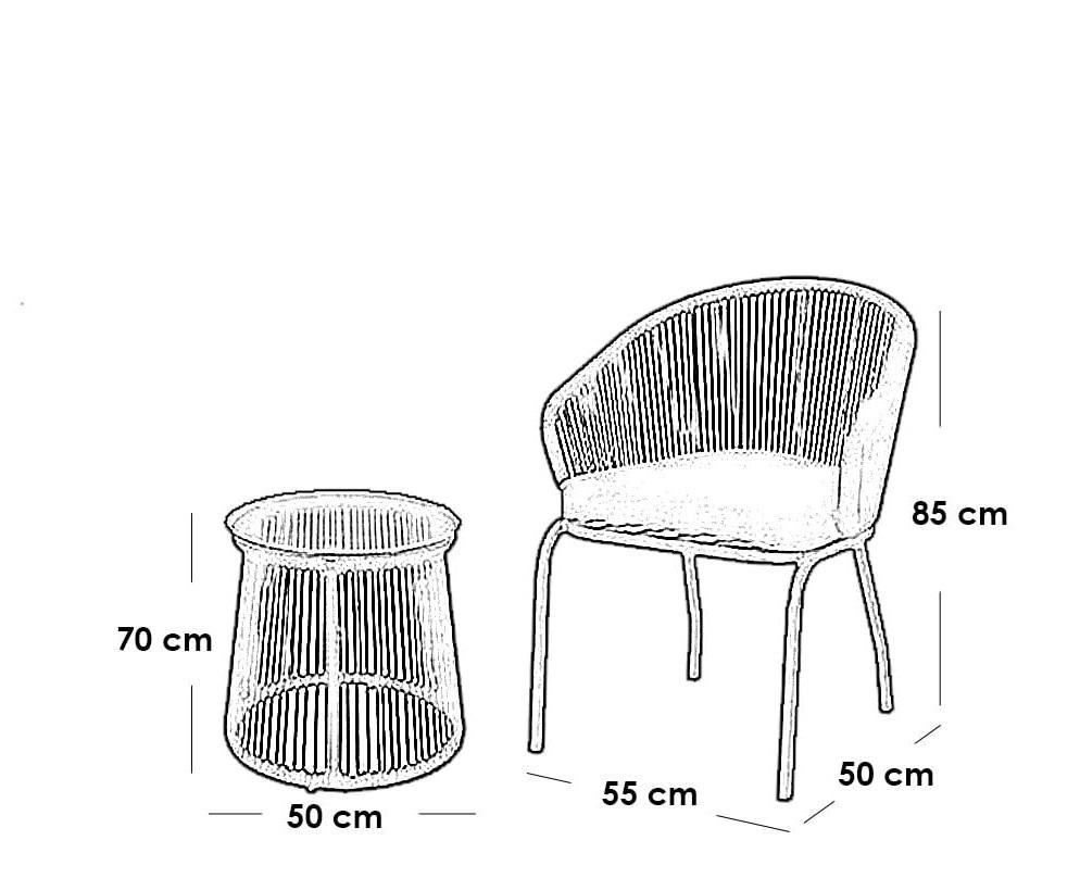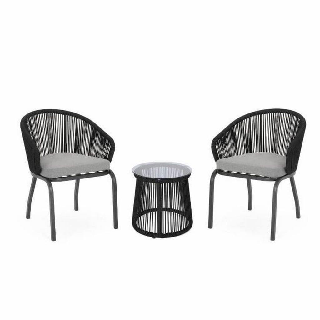 طقم أثاث خارجي حديد و خيط دوبار 3 قطعة - أسود و رمادي