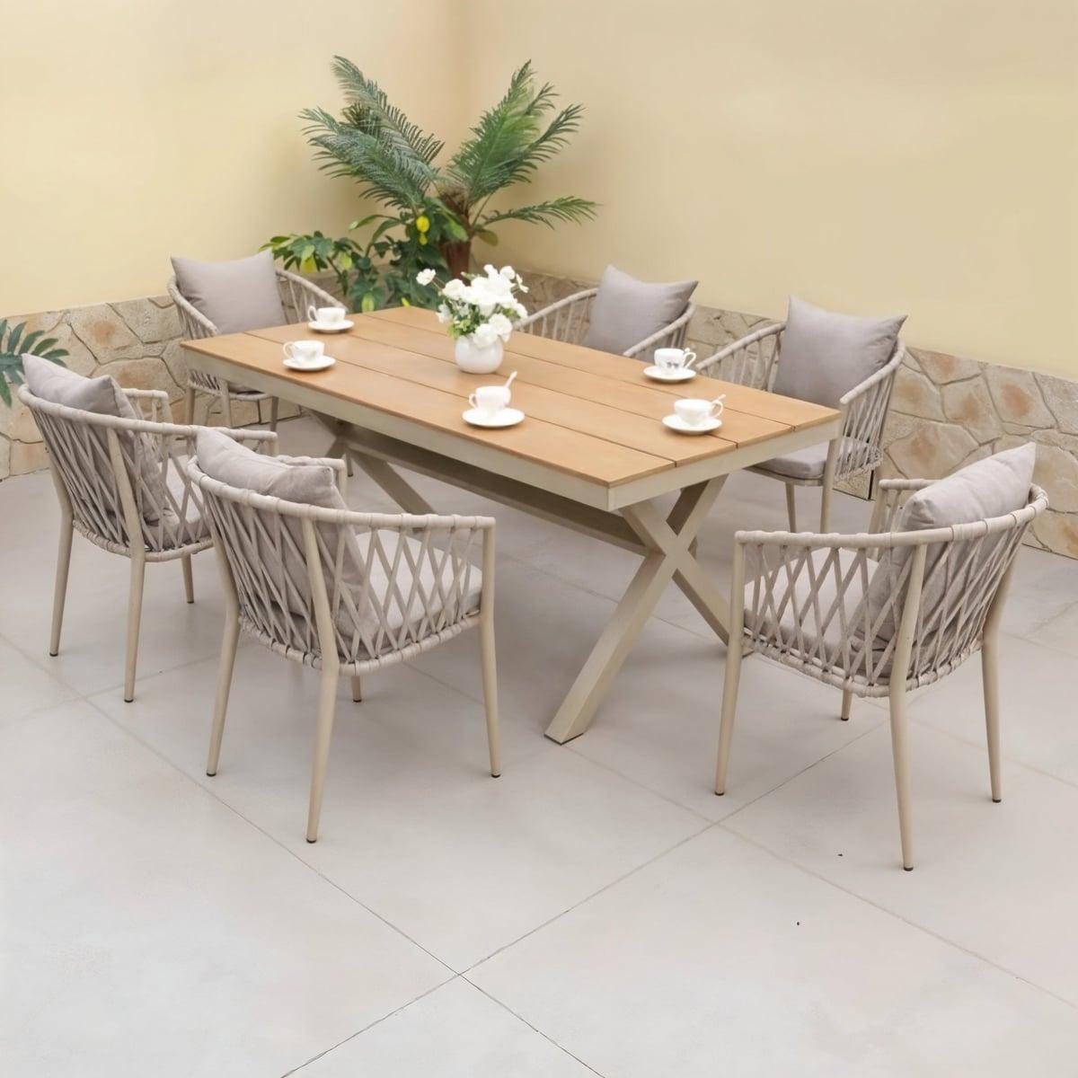 • عدد القطع: 7 (ترابيزة واحدة، 6 كراسي)