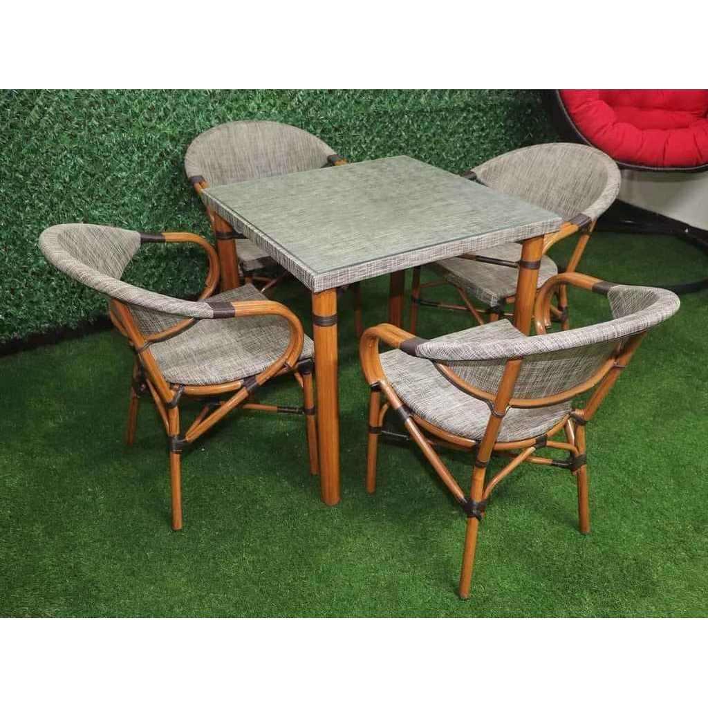 طقم أثاث خارجي حديد و ميش 5 قطعة - بيج و رمادي
