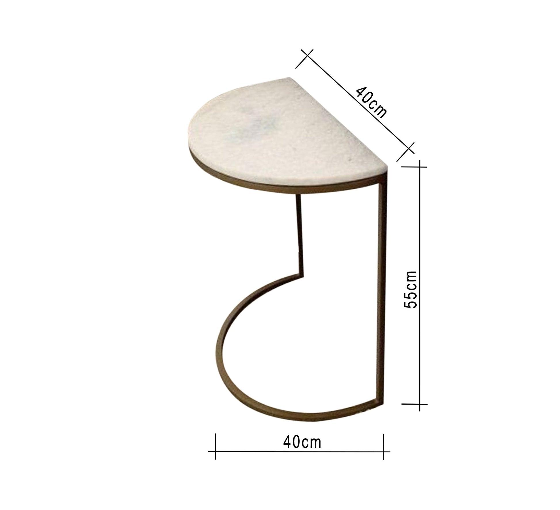 - اختر أثاثًا يعبر عن ذوقك ويمنحك الراحة التي تستحقها. - اتنين طاولة مميزة التصميم لجانبي الكنب بغرفة المعيشة بسطح نصف دائرى - ارتفاع المنتج 55 سم وعرض 40 سم وطول 40 سم - مصنوع من معدن قوى غير قابل للصدأ مع رخام