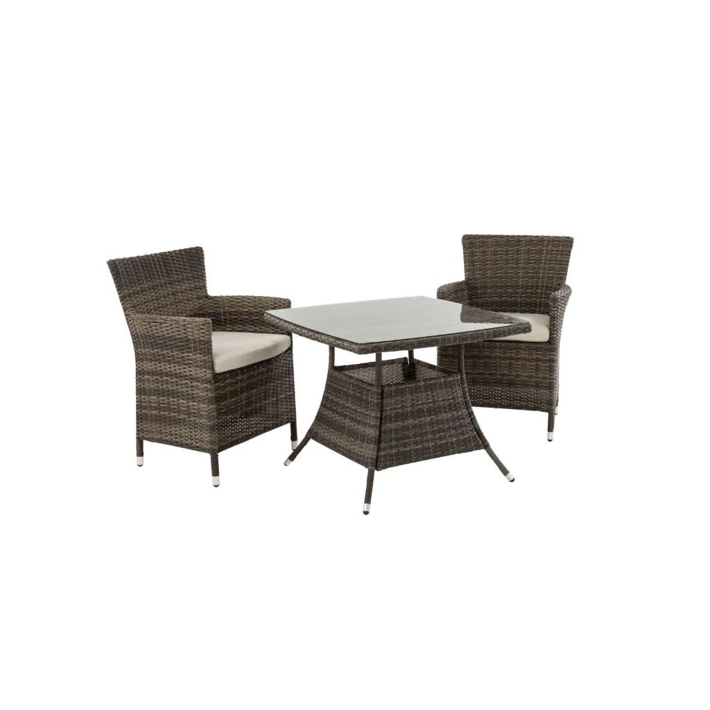طقم أثاث خارجي مصنوع من بلاستيك رتان و إسفنج.