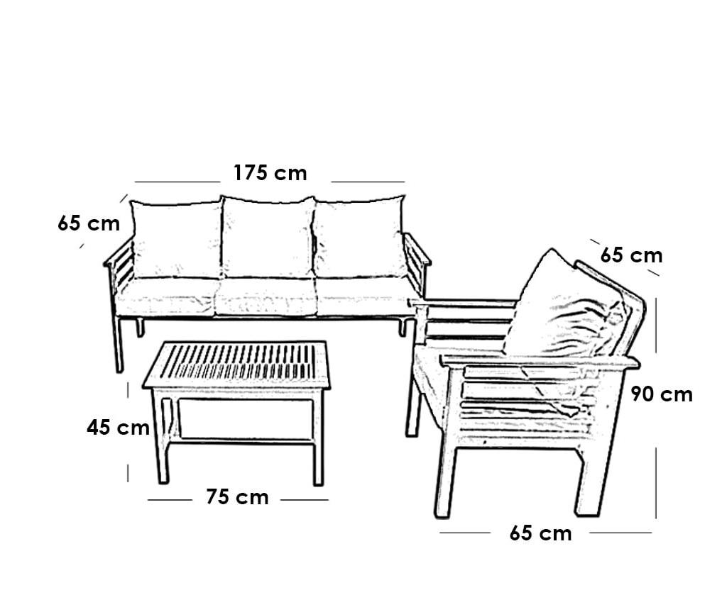 • مصنوع من خشب زان، و يتكون من كنبة و 2 كرسي و ترابيزة.