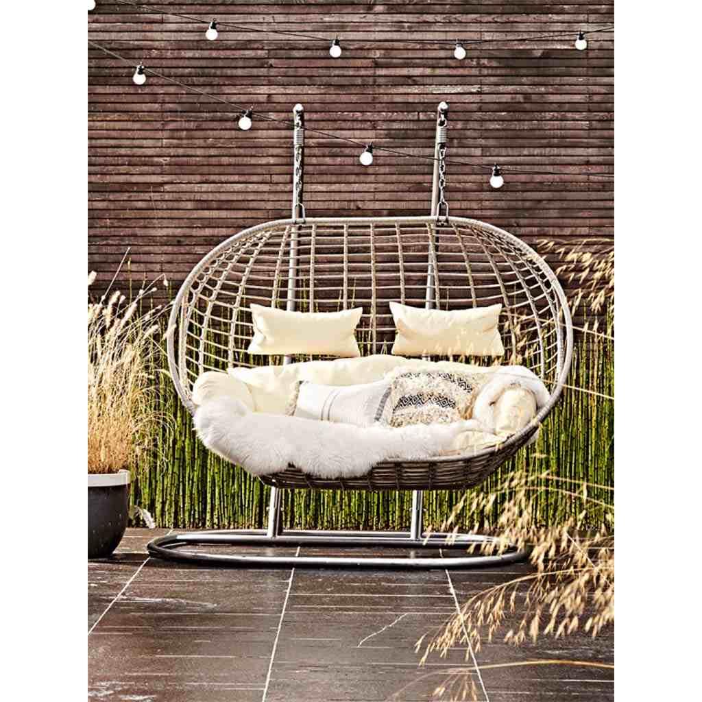 • كرسي معلق مصنوع من بلاستيك رتان و إسفنج.