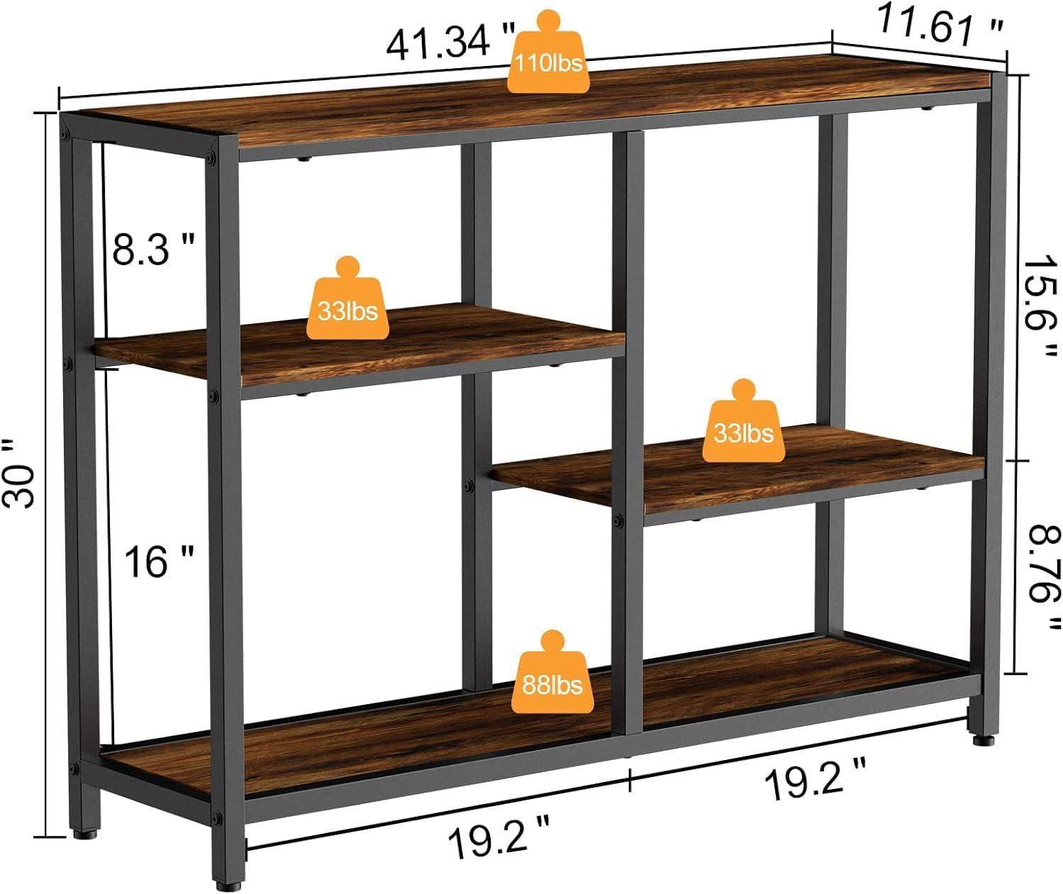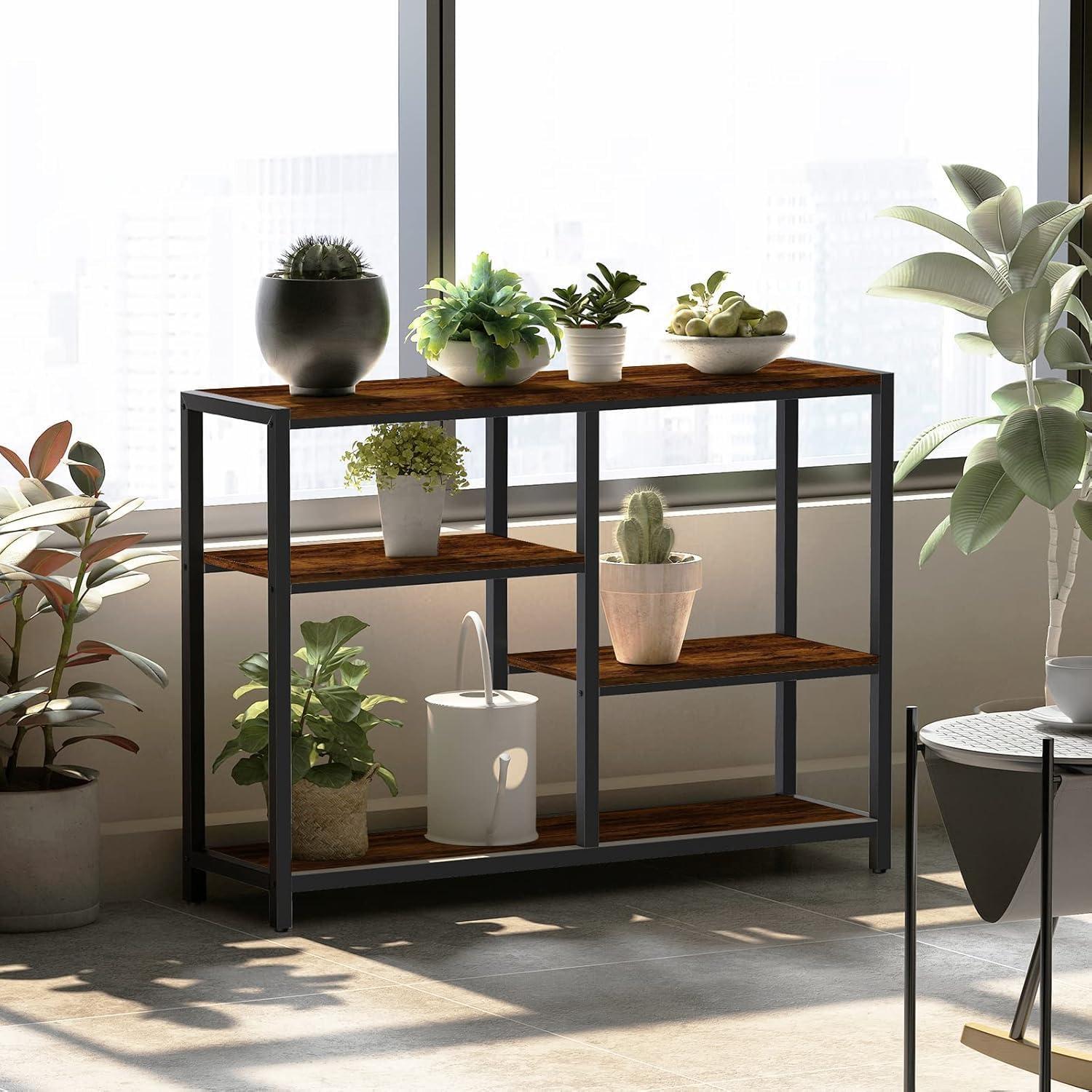 منضدة أو طاولة منصة تحكم من ام ايه ستيل، مصنوعة من الخشب والمعدن، مع أرجل قابلة للتعديل ورفوف تخزين من 3 طبقات، باللون البني، بأبعاد 105 × 29.5 × 76 سم
