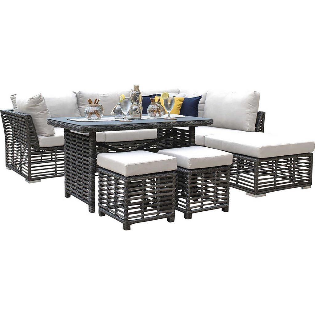 مصنوع من بلاستيك رتان بيور و قماش دك، و يتكون من كنبة و ترابيزة و 2 بوف.