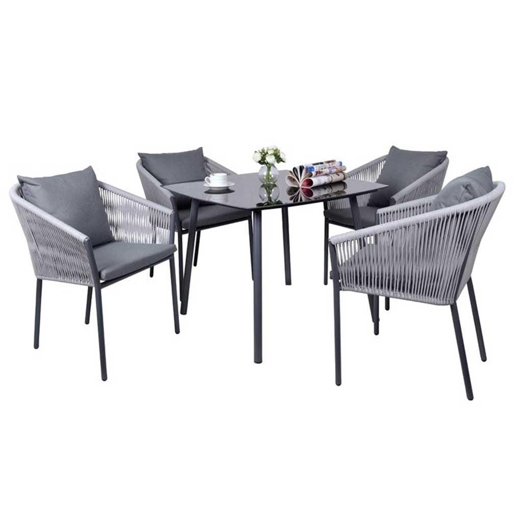 طقم أثاث خارجي معدن 5 قطع - رمادي