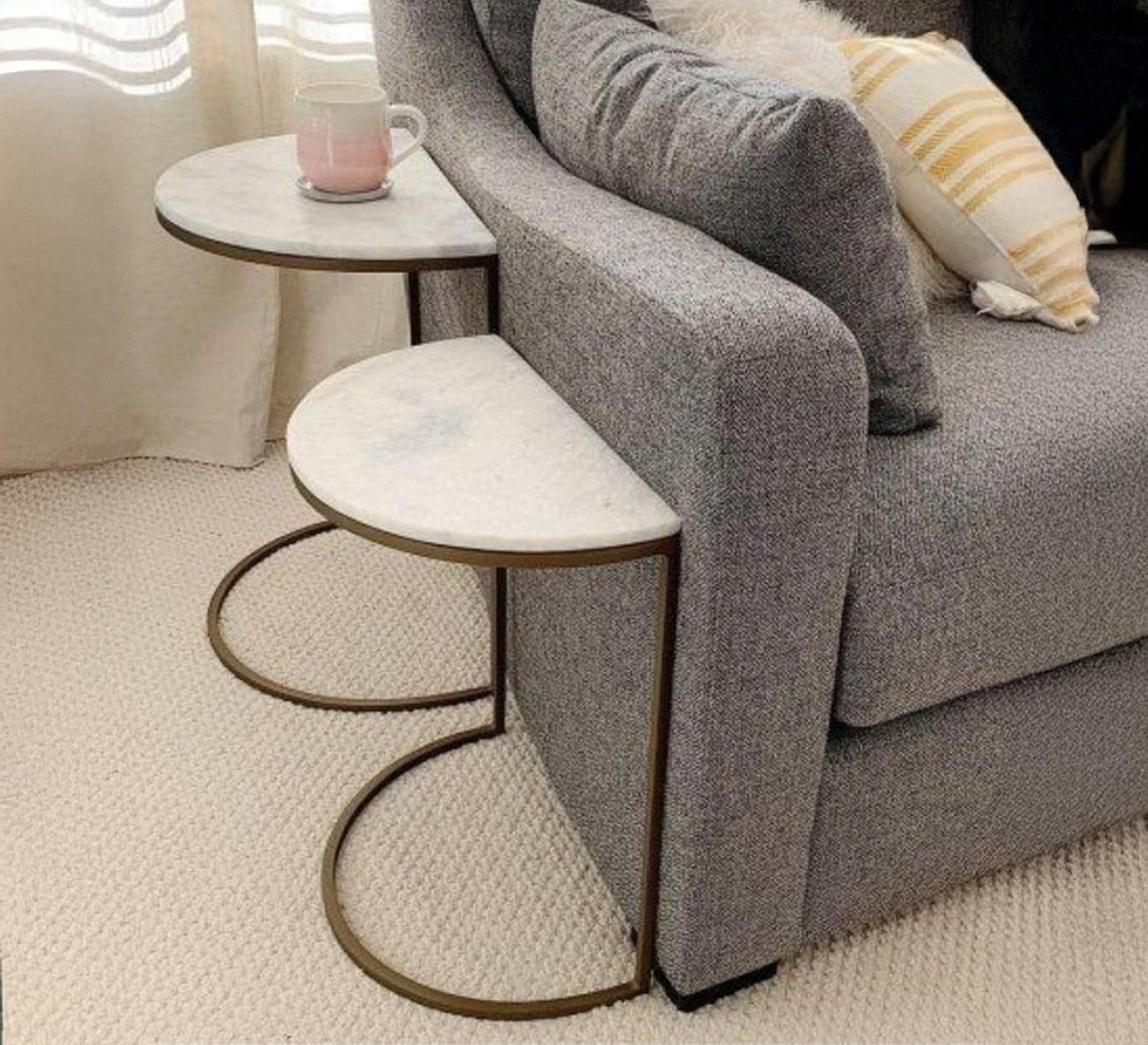 - اختر أثاثًا يعبر عن ذوقك ويمنحك الراحة التي تستحقها. - اتنين طاولة مميزة التصميم لجانبي الكنب بغرفة المعيشة بسطح نصف دائرى - ارتفاع المنتج 55 سم وعرض 40 سم وطول 40 سم - مصنوع من معدن قوى غير قابل للصدأ مع رخام