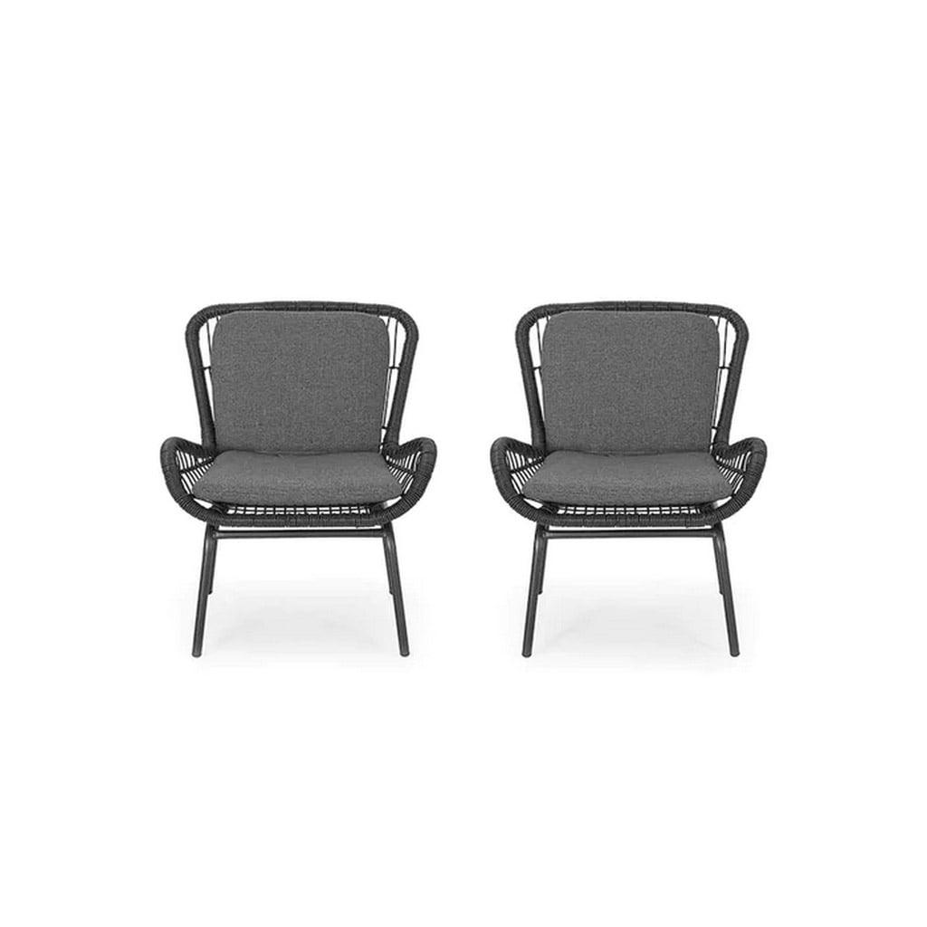 طقم كراسي خارجي راتان وحديد وجاكوار قطعتين - أسود ورمادي