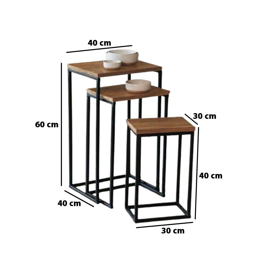 اللون: أسود وبني الإرتفاع (سم): الكبيرة 60 الوسط50 الصغيرة 40 العرض (سم): الكبيرة 40الوسط 35 الصغيرة 30 الطول (سم): الكبيرة 40 الوسط 35الصغيرة 30 الخامة: ستيل خامة السطح: خشب ام دى اف
