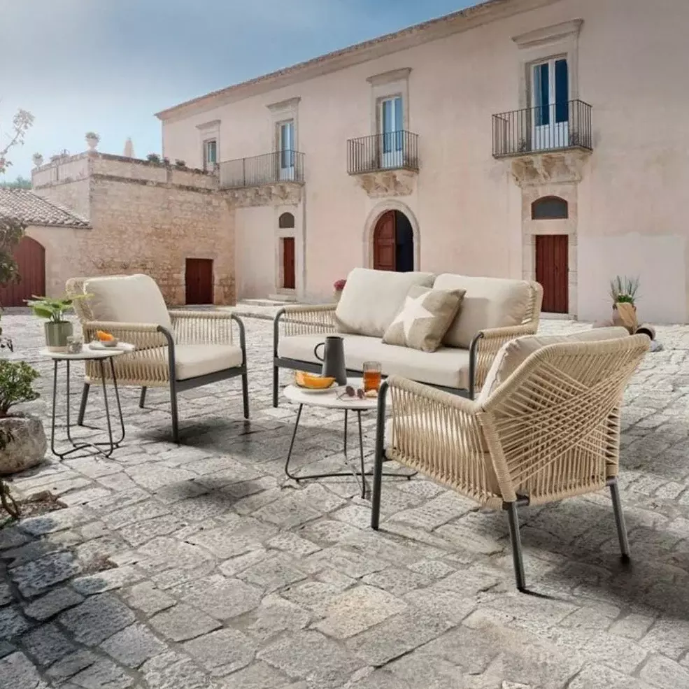 حوّل مساحتك الخارجية إلى مكان للاسترخاء والجلسات الممتعة مع طقم الأثاث الخارجي الأنيق. تصميم عملي ومريح يناسب الحدائق، الشرفات، والتراسات، مع خامات مقاومة للعوامل الجوية لضمان المتانة والجمال. اجعل أوقاتك في الهواء الطلق أكثر راحة وفخامة.